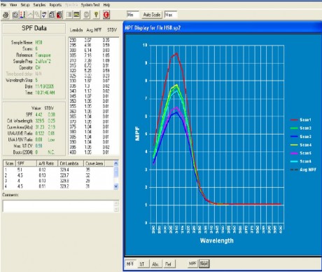 根據防曬化妝品中紫外線吸收劑和屏蔽劑可以阻擋紫外線的性質,將防曬化妝品涂在 PMMA板或3M專用膠帶上,用不同波長的紫外線照射,測定樣品的吸光度值,依據測定值大小直接評價防曬效果。