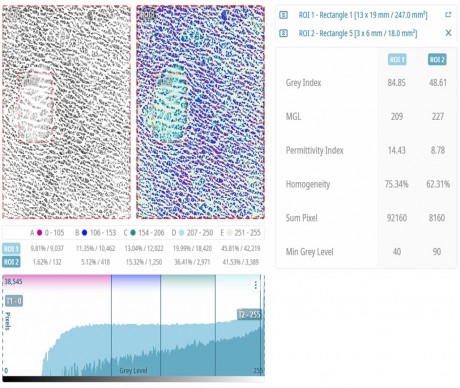 測試原理: 德國CK公司成功地將一種應用于安保領域的指紋記錄傳感器應用于皮膚表面水分分布圖 的測試中,將一個表面涂有二氧化硅保護層的有90000個相距50µm的電容器組成的 18×12.8mm的圖像傳感器芯片以一定壓力壓在皮膚表面,就可以得到皮膚表面的水分分布圖 和組織的顯微結構圖。